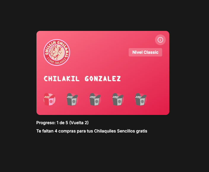 - Con 5 sellos → en tu próxima compra obtienes unos Chilakiles sencillos gratis o un descuento equivalente.