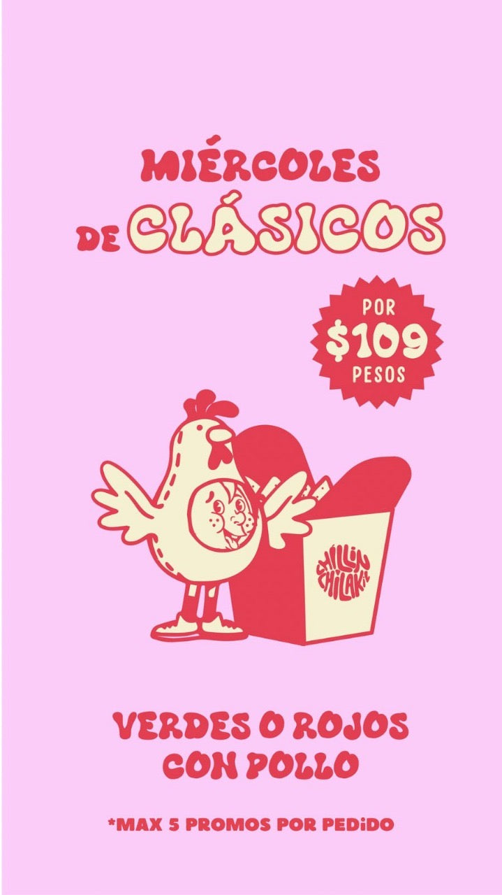- Miércoles Clásicos → Chilakiles verdes o rojos de pollo $109
